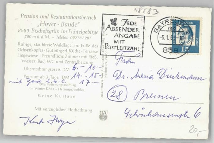 40235367 Bischofsgruen oyer Baude x 1965 KatCode 11110009472121