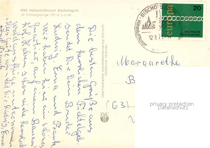 73272569 alte Postkarte Bischofsgruen Panorama postalisch gelaufen Erhaltung siehe scans [KathaD81] KatCode: 11110009472121