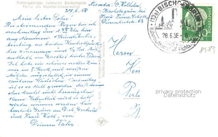 43495153 alte Postkarte Bischofsgruen Panorama Glasermuehle postalisch gelaufen Erhaltung siehe scans [KathaD81] KatCode: 11110009472121