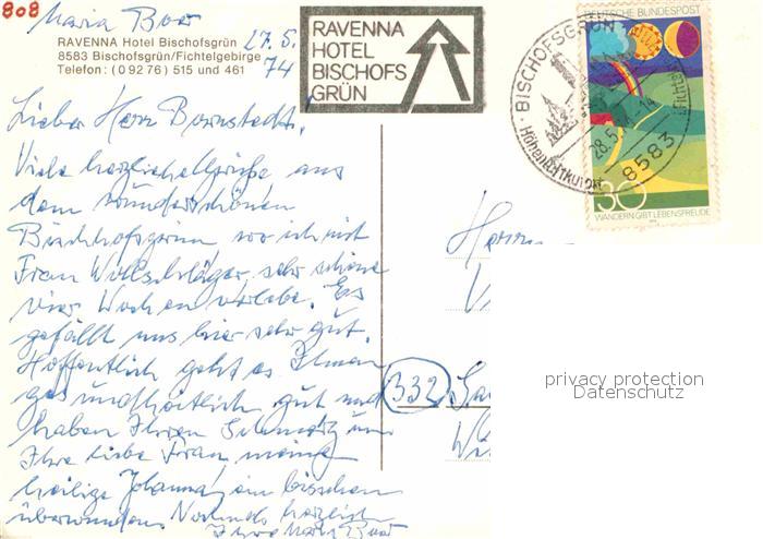 72725896 alte Postkarte Bischofsgruen Ravenna Hotel postalisch gelaufen Erhaltung siehe scans [WerneD78] KatCode: 11110009472121