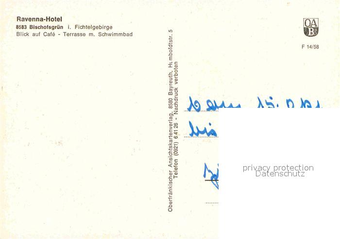 72828301 Bischofsgruen Ravenna Hotel im Fichtelgebirge postalisch nicht gelaufen Erhaltung siehe scans [FriedD77] KatCode: 11110009472121
