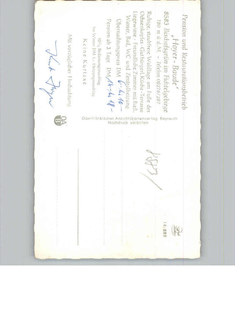 31163647 Bischofsgruen Restaurant Pension Hoyer-Baude postalisch nicht gelaufen KatCode: 11110009472121