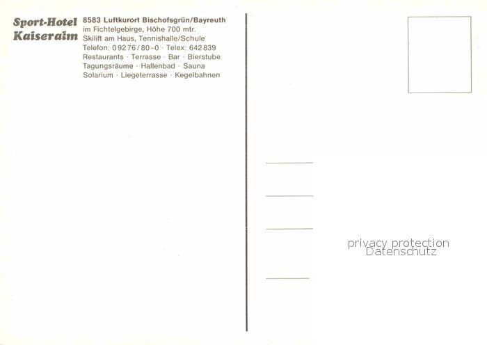 72896716 Bischofsgruen Sport Hotel Kaiseralm postalisch nicht gelaufen Erhaltung siehe scans [AndreD76] KatCode: 11110009472121