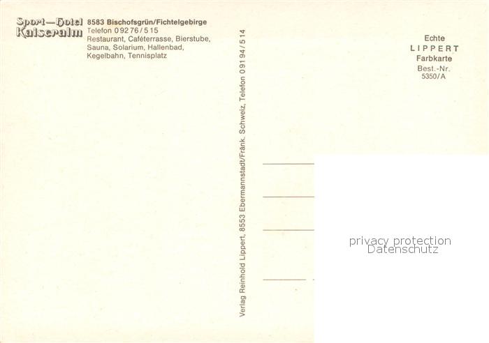 73713915 Bischofsgruen Sport Hotel Kaiseralm postalisch nicht gelaufen Erhaltung siehe scans [WerneD78] KatCode: 11110009472121