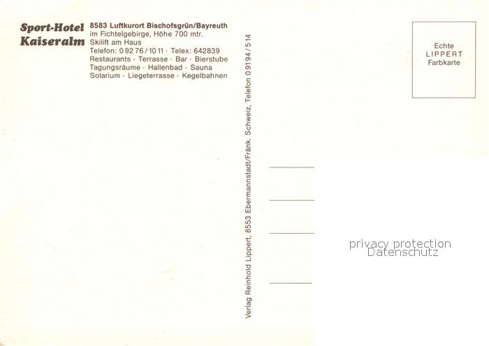 72931091 Bischofsgruen Sporthotel Kaiseralm postalisch nicht gelaufen Erhaltung siehe scans [KathaD81] KatCode: 11110009472121