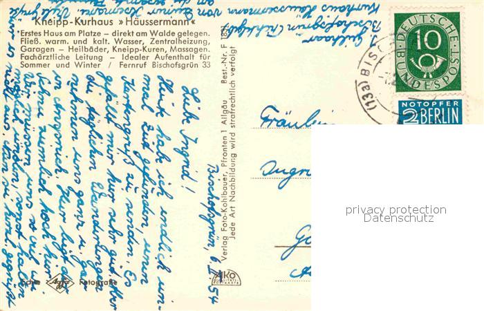 72822619 alte Postkarte Bischofsgruen Wintersportplatz Weissmainquelle Asenturm Forsthaus Karches Schneeberggipfel Skisprungschanze Fichtelgebirge postalisch gelaufen Erhaltung siehe scans [FriedD77] KatCode: 11110009472121