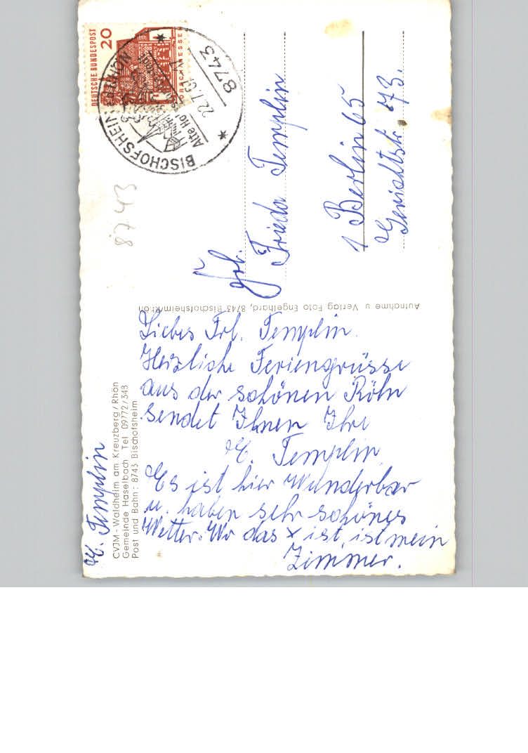 31170120 Bischofsheim Rhoen postalisch nicht gelaufen KatCode: 11110009673117