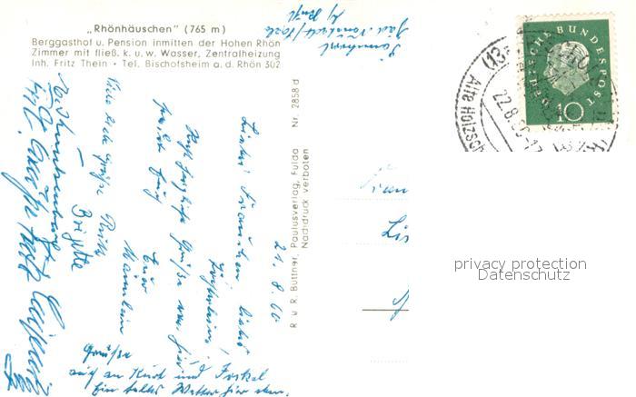 73614821 alte Postkarte Bischofsheim Rhoen Berggasthof und Pension Rhoenhaeuschen postalisch gelaufen Erhaltung siehe scans [WerneD78] KatCode: 11110009673117