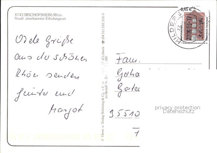 72422042 alte Postkarte Bischofsheim Rhoen Erholungsort Fliegeraufnahme postalisch gelaufen Erhaltung siehe scans KatCode: 11110009673117
