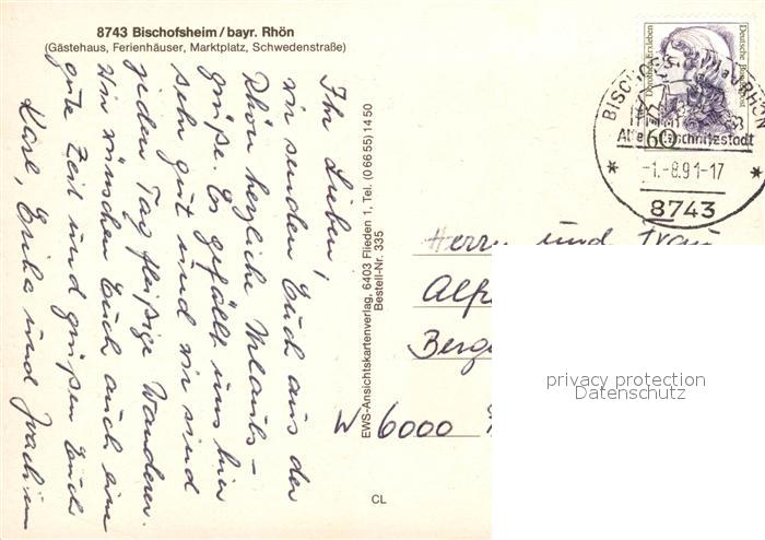 73223867 alte Postkarte Bischofsheim Rhoen Ferienhaeuser Marktplatz Schwedenstrasse postalisch gelaufen Erhaltung siehe scans [LiesaD40] KatCode: 11110009673117