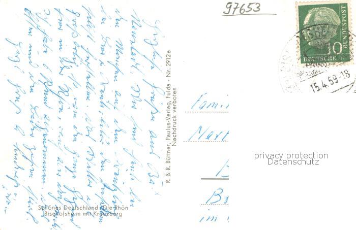 73762818 alte Postkarte Bischofsheim Rhoen Fliegeraufnahme Gesamtansicht m. Kreuzberg postalisch gelaufen Erhaltung siehe scans [LiesaD40] KatCode: 11110009673117
