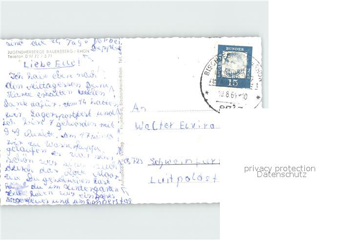 72217160 alte Postkarte Bischofsheim Rhoen Jugendherberge Bauersberg postalisch gelaufen Erhaltung siehe scans KatCode: 11110009673117