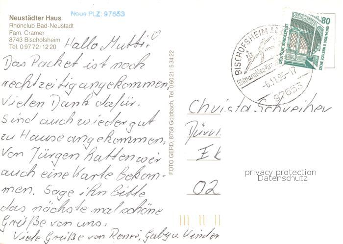 73056228 alte Postkarte Bischofsheim Rhoen Panorama Neustaedter Haus Terrasse Gastraum postalisch gelaufen Erhaltung siehe scans [WerneD78] KatCode: 11110009673117