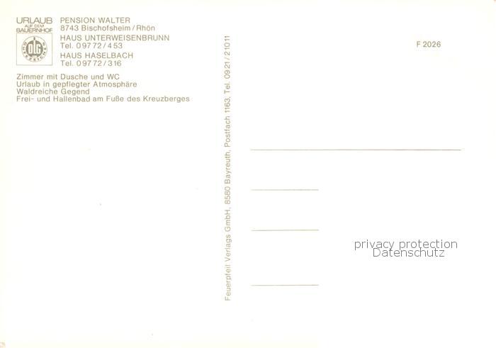 73845325 Bischofsheim Rhoen Pension Walter Marktplatz Haus Unterweisenbrunn Weiher postalisch nicht gelaufen Erhaltung siehe scans [FriedD77] KatCode: 11110009673117