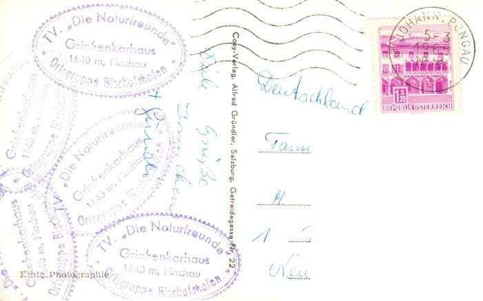 alte Postkarte Bischofshofen am Zimmerberg AT Schi und Ferienheim Griessenkarhaus am Dachstein postalisch gelaufen Erhaltung siehe scans [WerneD78]