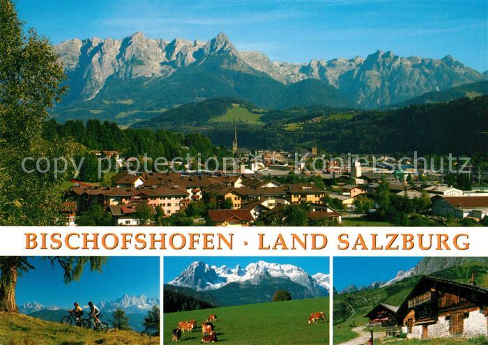 73155805 Bischofshofen Gesamtansicht mit Alpenpanorama Mountainbike Almvieh Bergbauern postalisch nicht gelaufen Erhaltung siehe scans [FriedD77] KatCode: 11390322050404