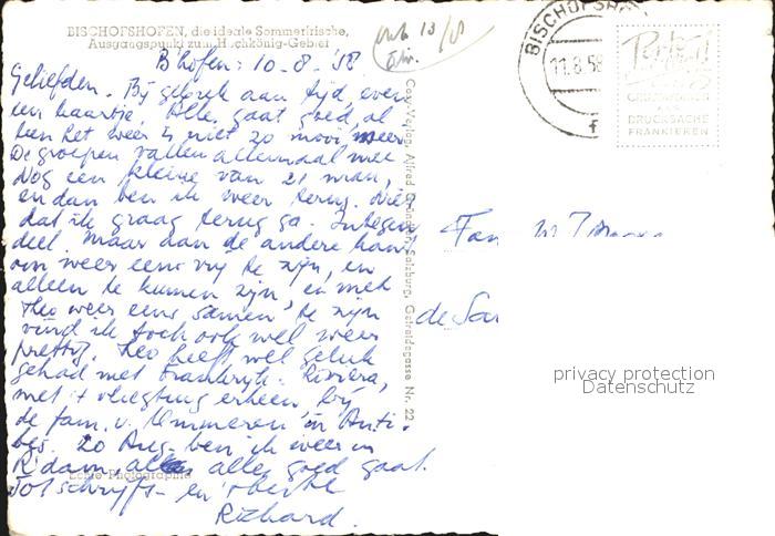 72409402 alte Postkarte Bischofshofen Kreuzberg Arthurhaus Muehlbach Hochkoenig Ortspartie postalisch gelaufen Erhaltung siehe scans KatCode: 11390322050404