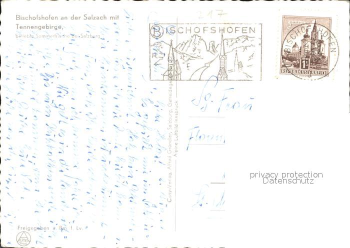 72411573 alte Postkarte Bischofshofen mit Tennengebirge Fliegeraufnahme postalisch gelaufen Erhaltung siehe scans KatCode: 11390322050404