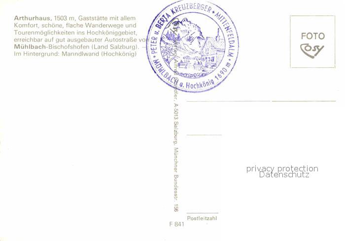 72620705 Bischofshofen Muehlbach Arthurhaus postalisch nicht gelaufen Erhaltung siehe scans [LiesaD40] KatCode: 11390322050404