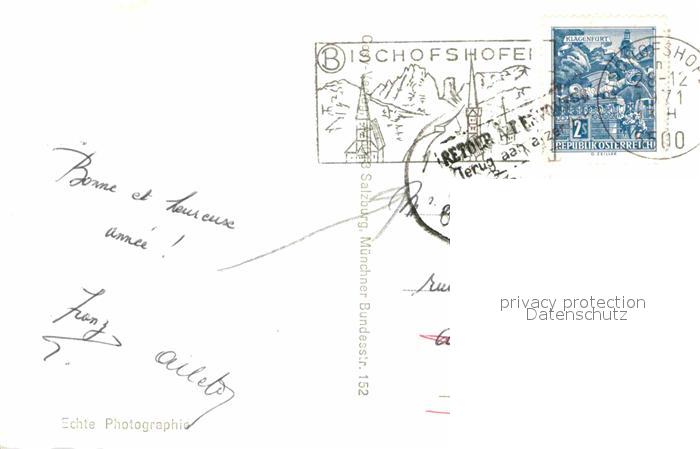 72706087 alte Postkarte Bischofshofen Partie am Fluss Kirche Blick zum Hochkoenig postalisch gelaufen Erhaltung siehe scans [FriedD77] KatCode: 11390322050404