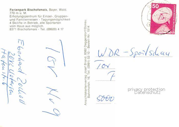 72724231 alte Postkarte Bischofsmais Ferienpark Skigebiet Geiskopf Wintersportplatz Ortsmotiv mit Kirche postalisch gelaufen Erhaltung siehe scans [FriedD77] KatCode: 11110009276116