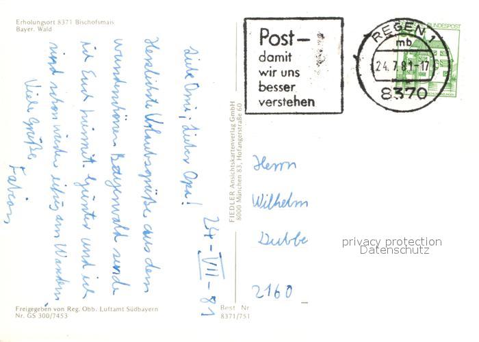 72943070 alte Postkarte Bischofsmais Fliegeraufnahme postalisch gelaufen Erhaltung siehe scans [KathaD81] KatCode: 11110009276116