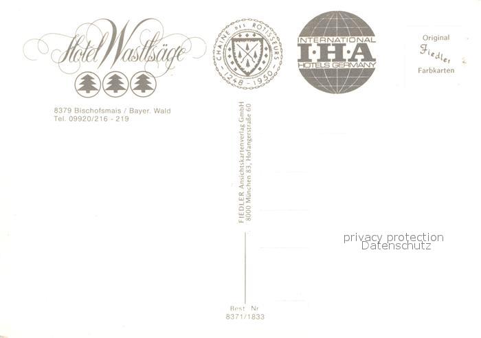 72961838 Bischofsmais Hotel Wastlsaege postalisch nicht gelaufen Erhaltung siehe scans [NatalD47] KatCode: 11110009276116