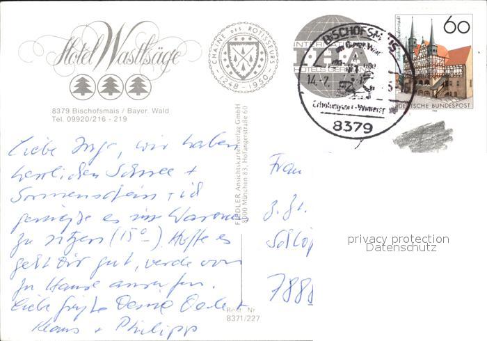 72439831 alte Postkarte Bischofsmais Hotel Wastlsaege Skipiste Geiskopf Eisstockschiessen postalisch gelaufen Erhaltung siehe scans KatCode: 11110009276116