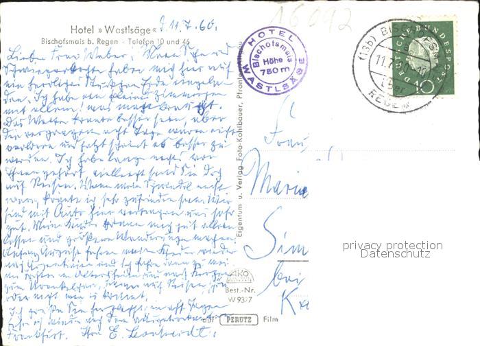 alte Postkarte Bischofsmais Hotel Wastlsaege Teufelstisch Felsformation postalisch gelaufen Erhaltung siehe scans