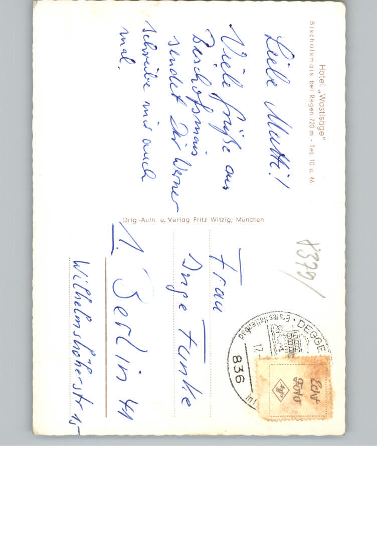 31159014 Bischofsmais Hotel Wastlsage postalisch nicht gelaufen KatCode: 11110009276116