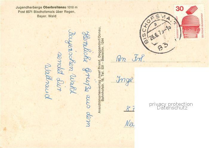 73689624 alte Postkarte Bischofsmais Jugendherberge Oberbreitenau Fliegeraufnahme postalisch gelaufen Erhaltung siehe scans [WerneD78] KatCode: 11110009276116