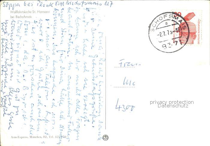 72409308 alte Postkarte Bischofsmais Wallfahrtskirche St. Hermann postalisch gelaufen Erhaltung siehe scans KatCode: 11110009276116