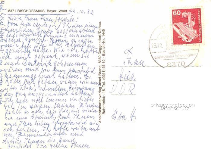 72636787 alte Postkarte Bischofsmais postalisch gelaufen Erhaltung siehe scans [NatalD47] KatCode: 11110009276116