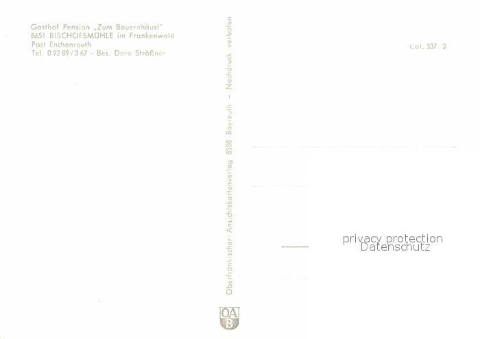 72842507 Bischofsmuehle Gasthof-Pension Zum Bauernhaeusl postalisch nicht gelaufen Erhaltung siehe scans [PaolaD17] KatCode: 11110009475136