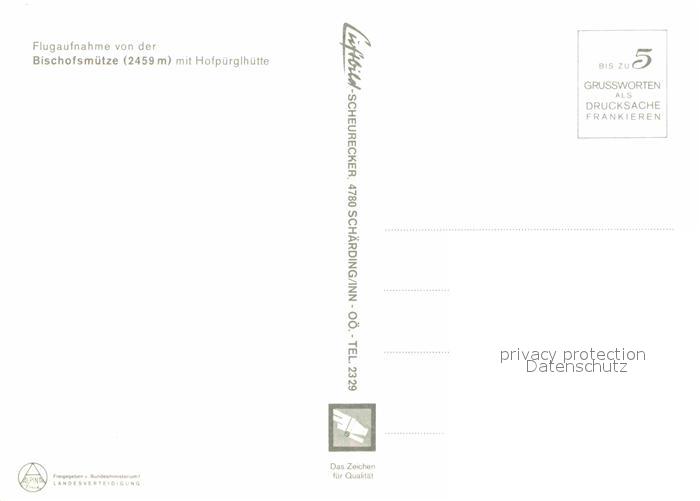 72709928 Bischofsmuetze mit Hofpuerglhuette Dachsteingebirge Fliegeraufnahme postalisch nicht gelaufen Erhaltung siehe scans [FriedD77] KatCode: 11390222061236