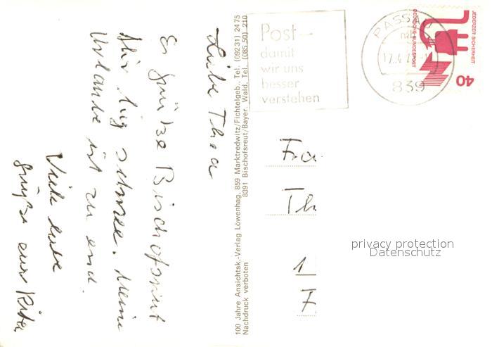 73673405 alte Postkarte Bischofsreut Haidmuehle Ferienort Nationalpark Bayerischer Wald Felsen Gipfelkreuz Wegweiser Inri Waldpartie postalisch gelaufen Erhaltung siehe scans [FriedD77] KatCode: 11110009272122