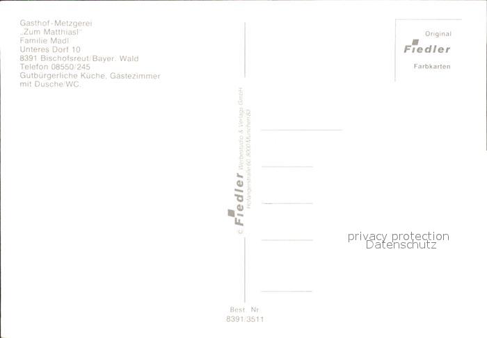 71931280 Bischofsreut Haidmuehle Gasthof Metzgerei Zum Matthiasl postalisch nicht gelaufen Erhaltung siehe scans KatCode: 11110009272122