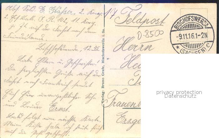 42191562 alte Postkarte Bischofswerda postalisch gelaufen Feldpost Erhaltung siehe scans KatCode: 11110014272020