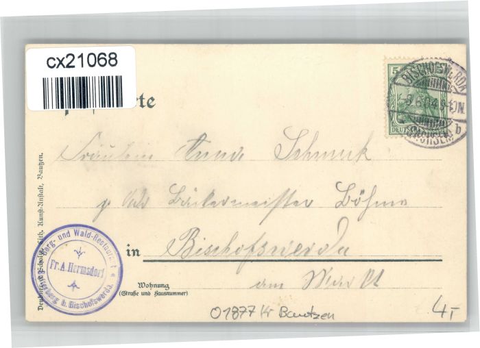 30740095 alte Postkarte Bischofswerda Batterberg postalisch gelaufen KatCode: 11110014272020