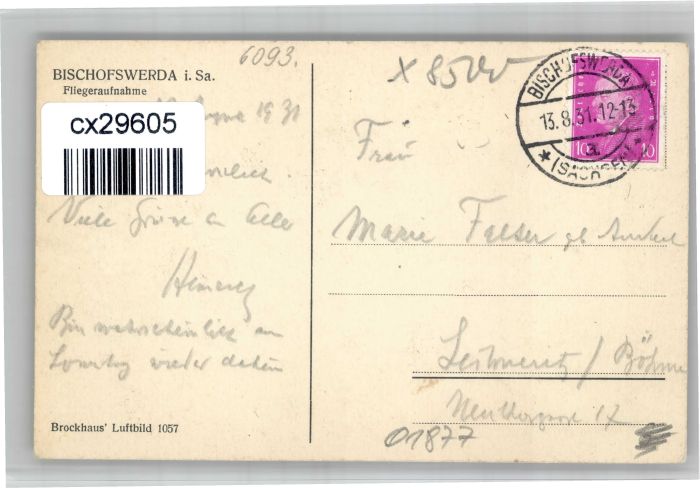 30924148 alte Postkarte Bischofswerda Fliegeraufnahme postalisch gelaufen KatCode: 11110014272020