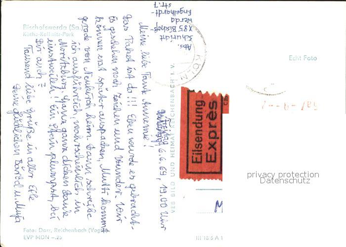 72597355 alte Postkarte Bischofswerda Kaethe-Kollwitz-Park postalisch gelaufen Erhaltung siehe scans [AndreD76] KatCode: 11110014272020