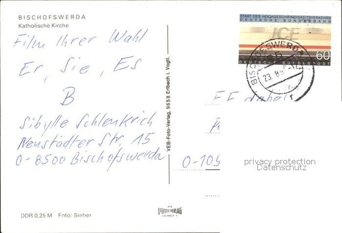 72134501 alte Postkarte Bischofswerda Katholische Kirche postalisch gelaufen Erhaltung siehe scans KatCode: 11110014272020