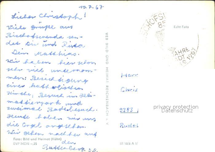 72343524 alte Postkarte Bischofswerda Paradiesbrunnen Altmarkt Denkmal Goetheschule Rathaus Gondelteich postalisch gelaufen Erhaltung siehe scans KatCode: 11110014272020