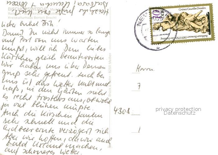 73012050 alte Postkarte Bischofswerda Rathaus Stadtkirche Kreiskulturhaus Bertolt Brecht postalisch gelaufen Erhaltung siehe scans [WerneD78] KatCode: 11110014272020