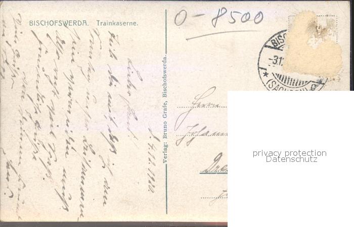 42191567 alte Postkarte Bischofswerda Trainkaserne postalisch gelaufen Erhaltung siehe scans KatCode: 11110014272020