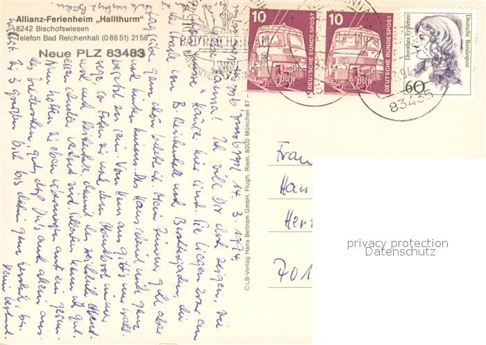 73651278 alte Postkarte Bischofswiesen Allianz Ferienheim Hallthurm Gastraeume postalisch gelaufen Erhaltung siehe scans [WerneD78] KatCode: 11110009172117