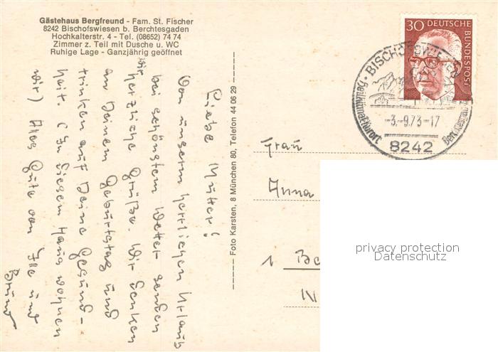 73651266 alte Postkarte Bischofswiesen Gaestehaus Bergfreund Panorama postalisch gelaufen Erhaltung siehe scans [WerneD78] KatCode: 11110009172117