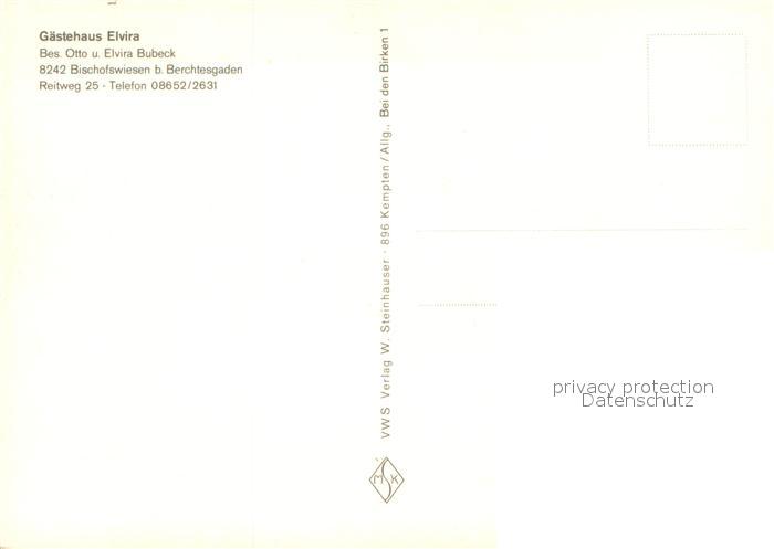 73651277 Bischofswiesen Gaestehaus Elvira postalisch nicht gelaufen Erhaltung siehe scans [WerneD78] KatCode: 11110009172117