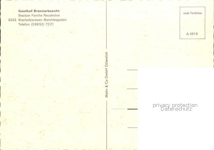 72468169 Bischofswiesen Gasthof Brennerbascht postalisch nicht gelaufen Erhaltung siehe scans KatCode: 11110009172117