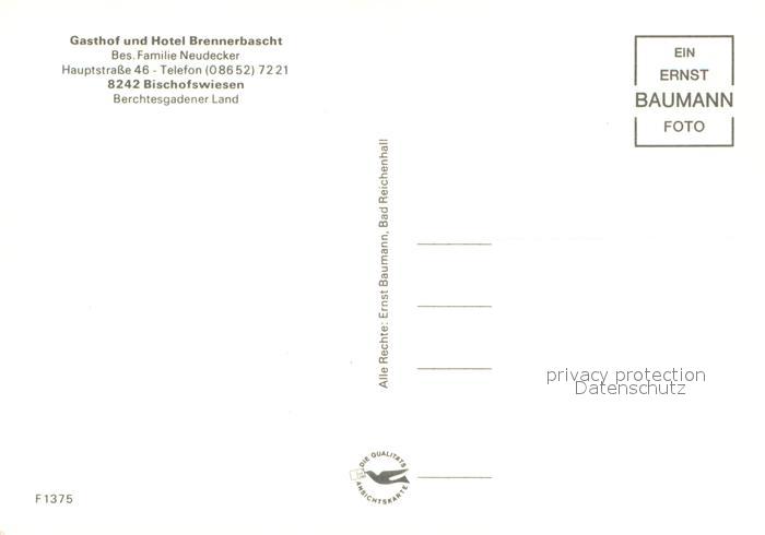 73615275 Bischofswiesen Gasthof Hotel Brennerbascht postalisch nicht gelaufen Erhaltung siehe scans [WerneD78] KatCode: 11110009172117